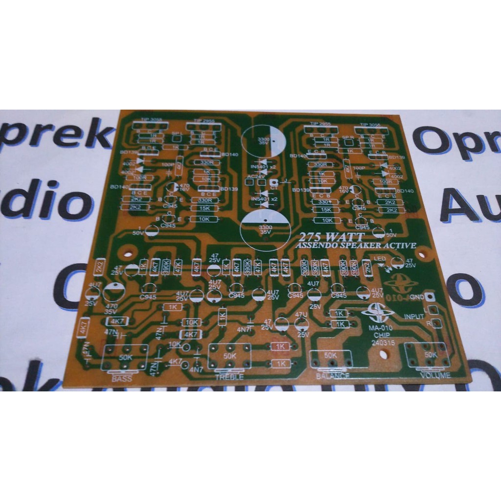 Lewat sebuah foto PCB ampli yang sedang ada di dalam etalase online mereka, saya lakukan tracing jalur dan komponen, sehingga menjadi sebuah rangkaian speaker aktif.