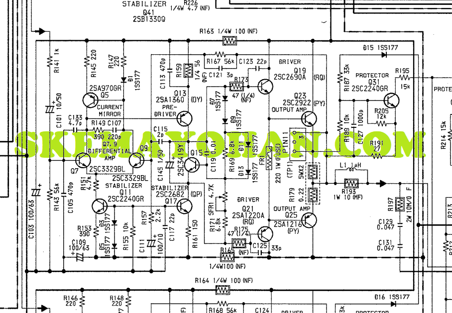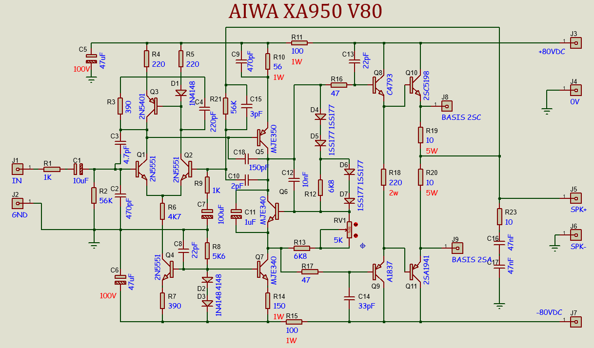 Berikut ini adalah skema awal dari AIWA XA950 seksi Power Amplifier: