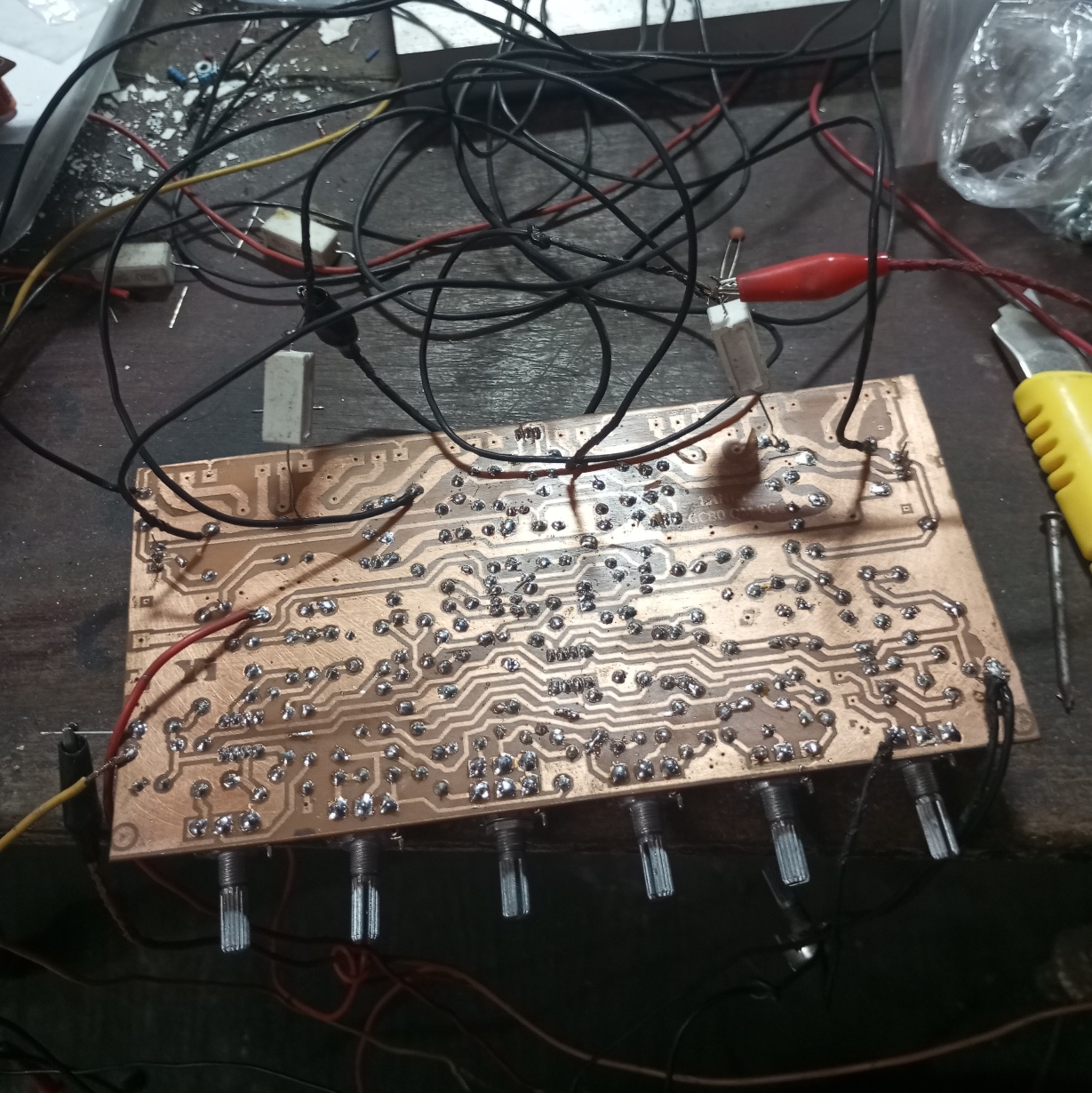 Jika tes ini berhasil maka semua transistor akan kita pasang dan tegangan Supply kita naikkan ke angka yang lebih tinggi.