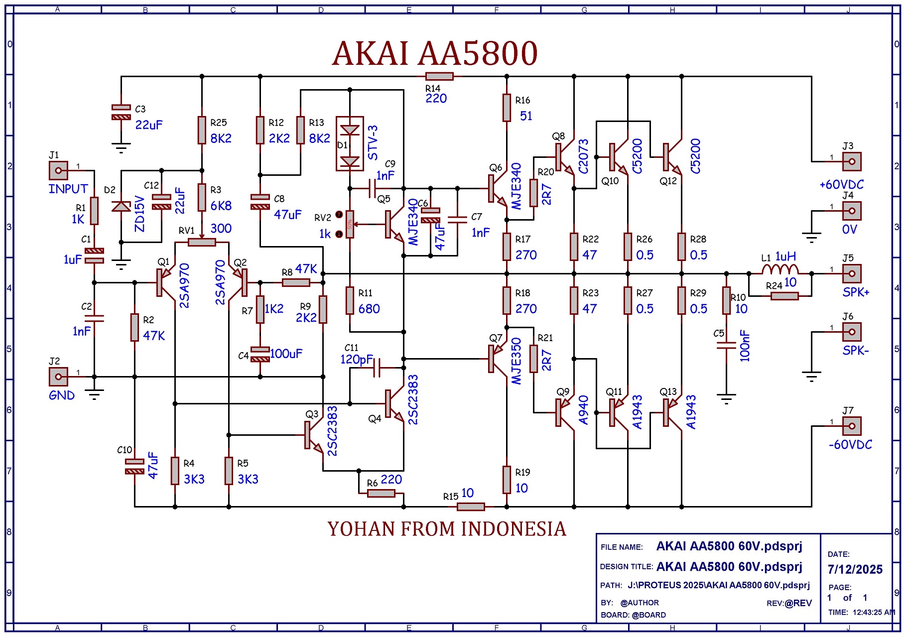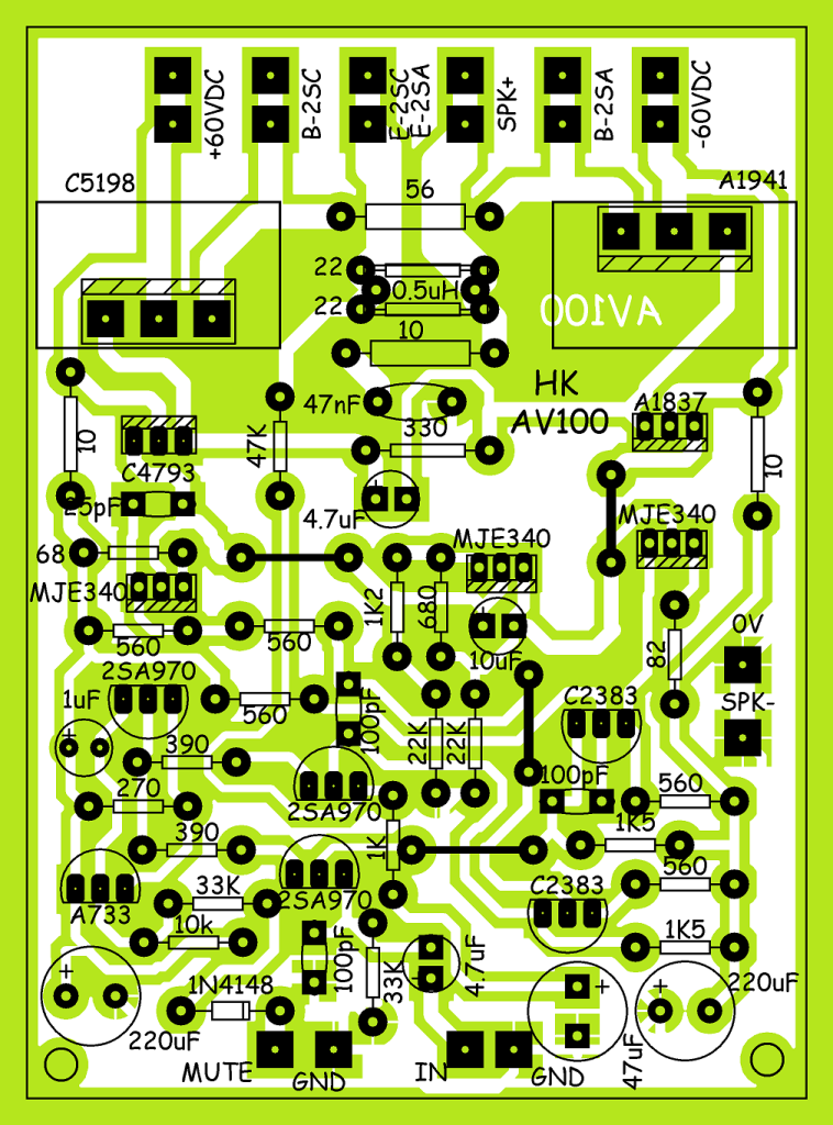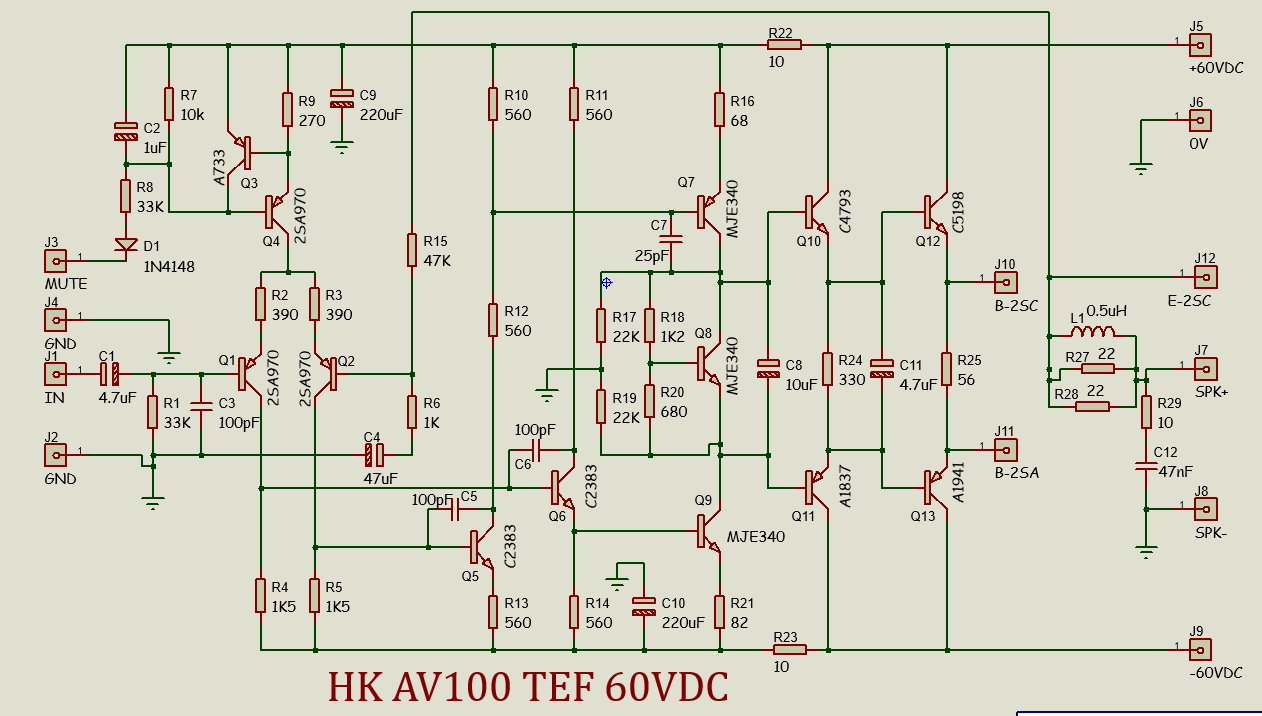 Berikut adalah hasil gambar ulang dari AV100 versi supply 60V dan hanya sampai Driver Output saja.