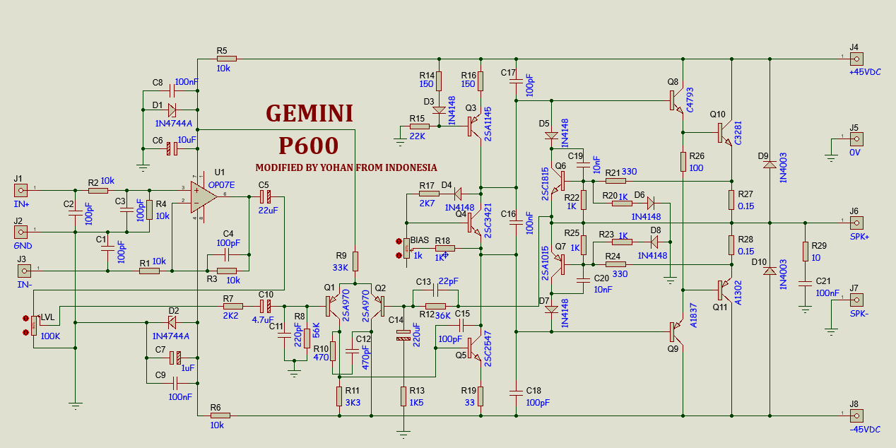 Kloning Power OCL GEMINI P600 meliputi modifikasi schematic Diagram,simulasi rangkaian dan pembuatan Layout PCB.
