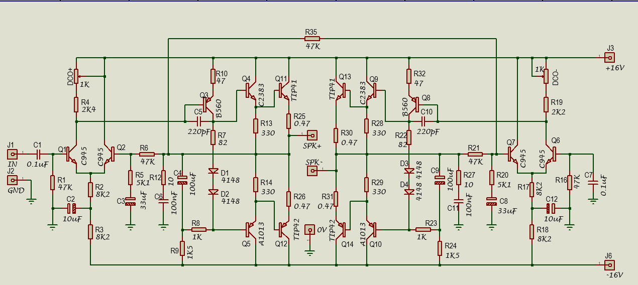Untuk membikin rangkaian ini betul betul 0VDC pada terminal output, maka saya sertakan 2 trimpot untuk menyetel DC- Offset rangkain ini untuk sisi SPK+ dan SPK-.