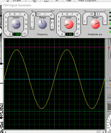 Setelah tes menggunakan tegangan Dc adalah normal, maka selanjutnya adalah memberi sinyal sinyus murni pada input rangkaian.