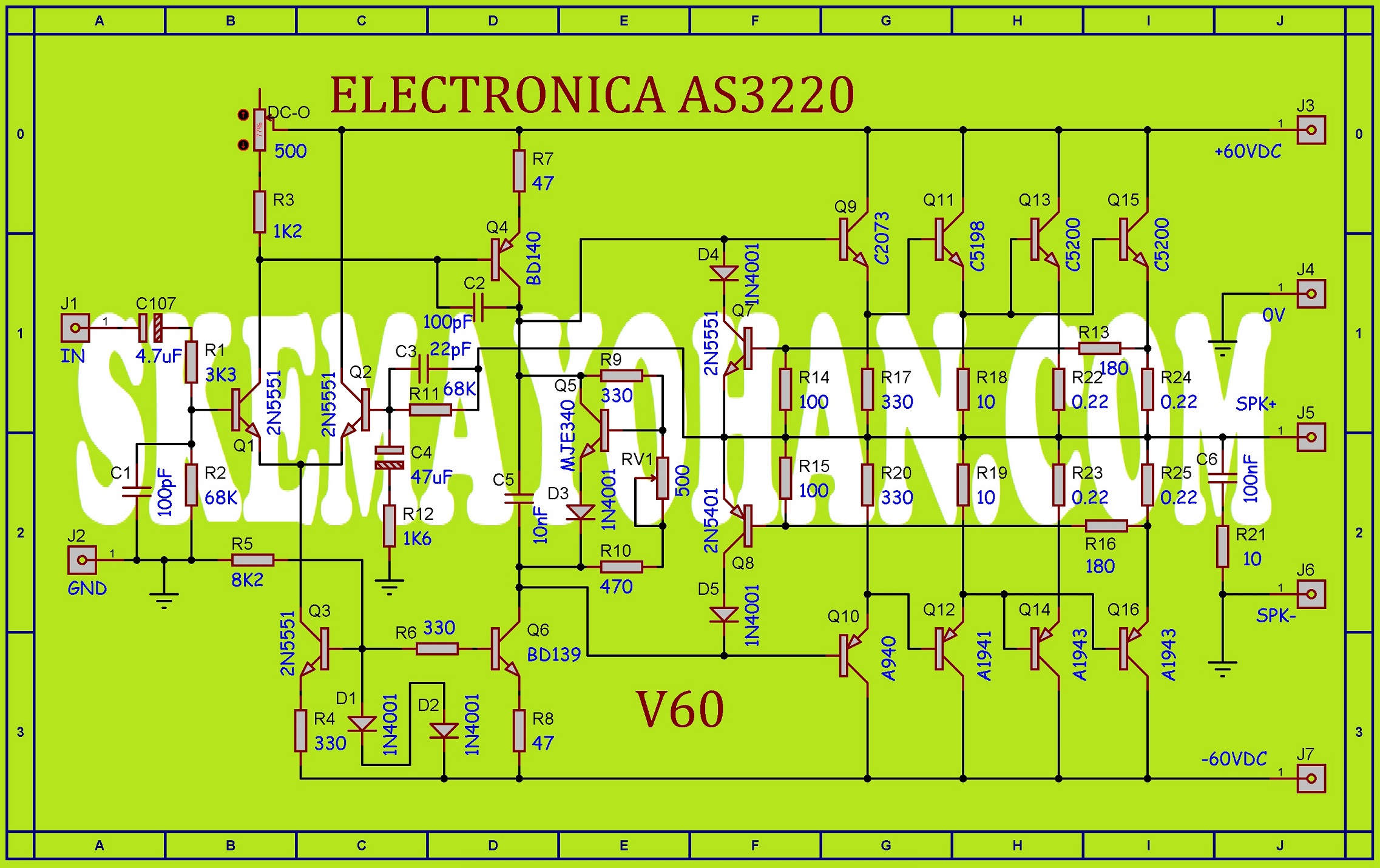 Sumber bahan adalah sebuah schematic Jadul Power Ampli lawas buatan ELECTRONICA dari negeri ROMANIA atau kita biasa menyebut dengan nama Rumania seri AS2050.