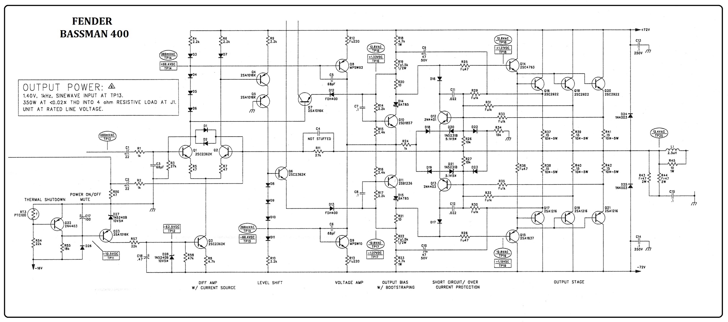 Berikut ini adalah potongan rangkaian Power Amplifier BASSMAN 400