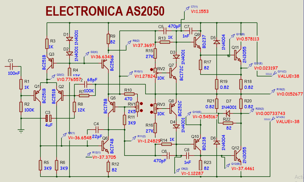 Setelah gambar ulang selesai, maka kita harus melakukan DC tes untuk memastikan rangkaian yang telah kita gambar adalah telah benar dan sesuai dengan kaidah Power Amplifier.