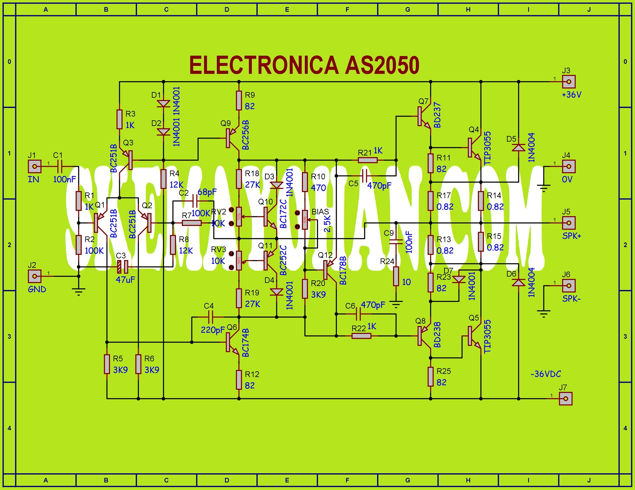 Sumber bahan adalah sebuah schematic Jadul Power Ampli lawas buatan ELECTRONICA dari negeri ROMANIA atau kita biasa menyebut dengan nama Rumania seri AS2050.