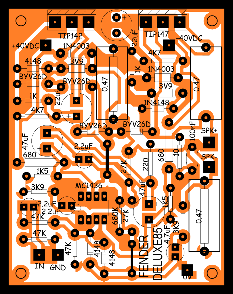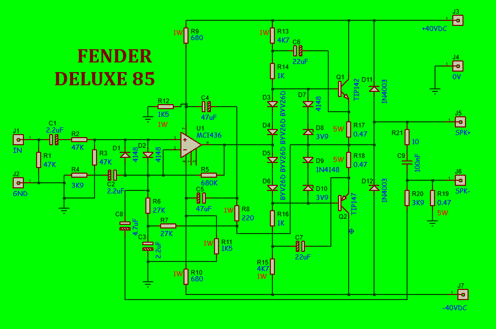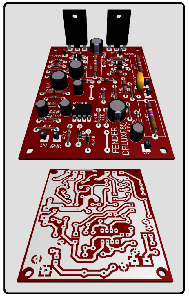 Rangkaian ini lumayan sederhana sehingga membuat saya ada ide untuk membikin kloning Power FENDER DELUXE 85.