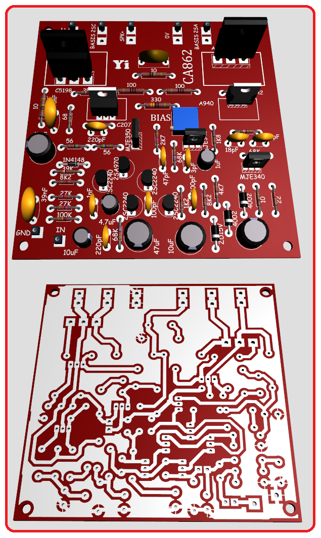 Layout PCB skema modifikasi FiSHER CA60 adalah seperti gambar di bawah ini: